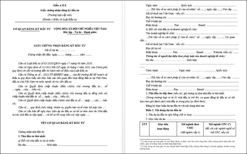 Mẫu Giấy chứng nhận đăng ký đầu tư tại Việt Nam [Cập nhật 2026]