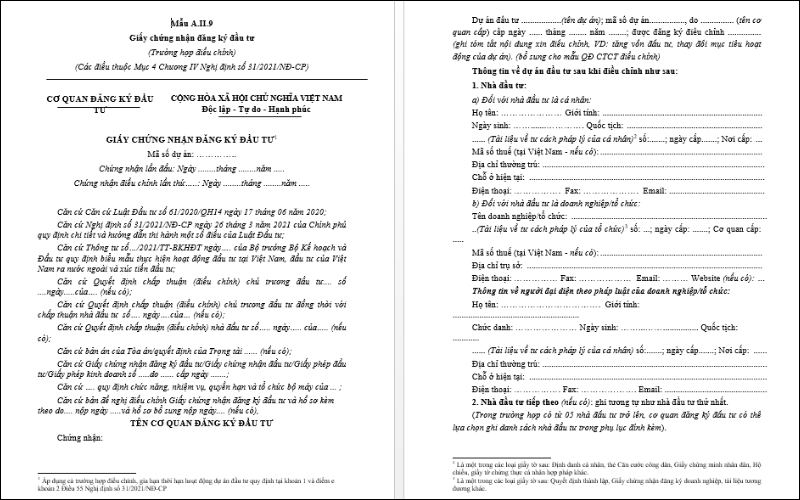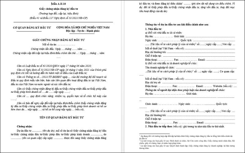 Việc sử dụng đúng mẫu giấy chứng nhận đầu tư này giúp đảm bảo quá trình đầu tư diễn ra suôn sẻ, nhanh chóng và hiệu quả hơn. Doanh nghiệp cần xác định đúng trường hợp để tải xuống mẫu phù hợp theo quy định pháp luật.